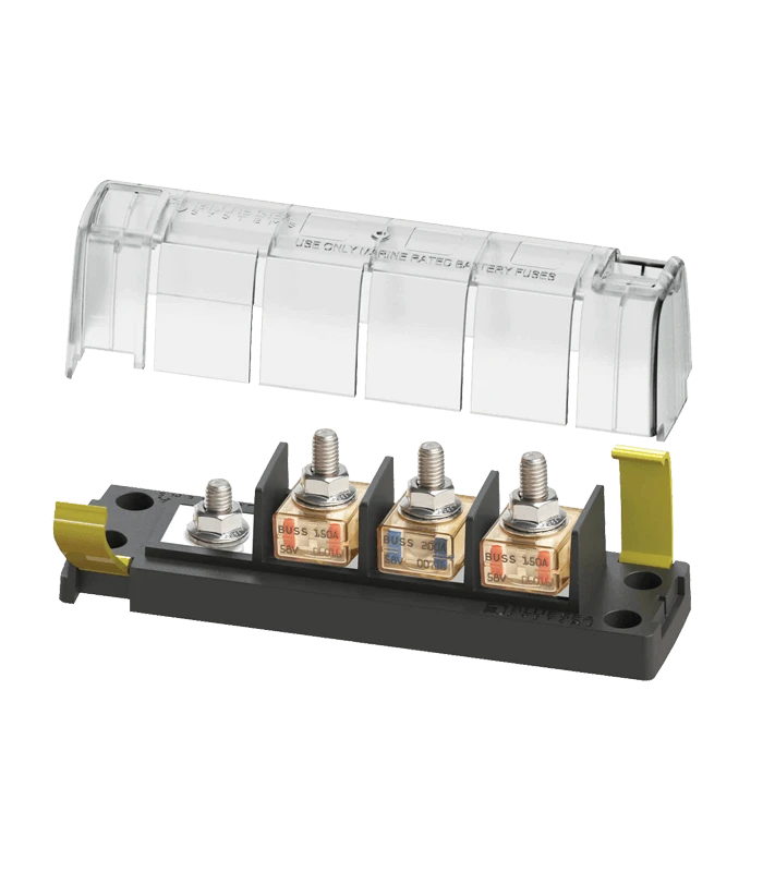 Sicherungshalter mit transparenter Kunststoff-Abdeckung, als Schutz vor Berührung und Feuchtigkeit.