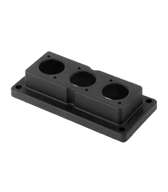 Aufbaugehäuse für den senkrechten Decksaufbau für drei Flanschstecker, bzw. -dosen oder Flanschring PG 13,5 für Kabeldurchführungen.