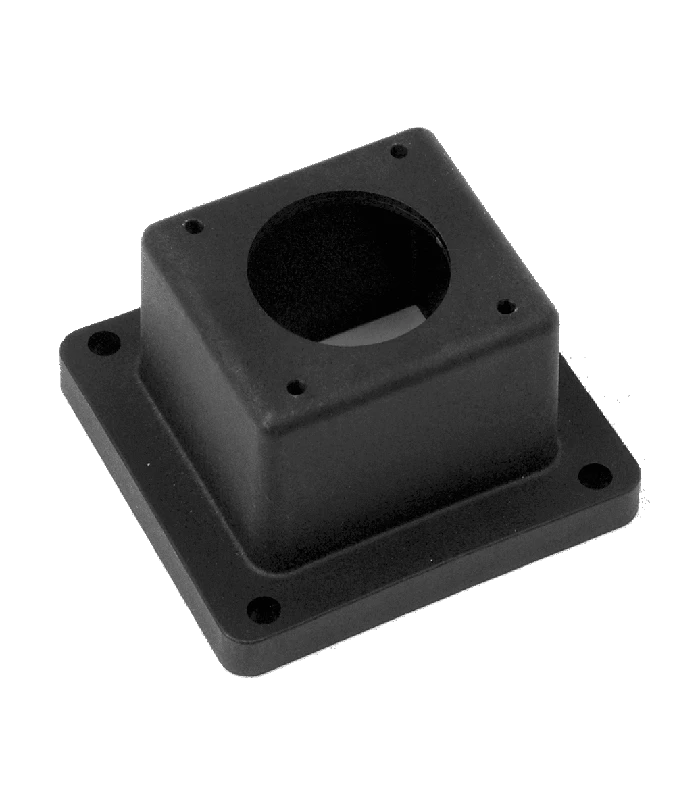 Aufbaugehäuse für den senkrechten Decksaufbau von Flanschstecker, bzw. -dose. Durch Verwendung des Aufbaugehäuses wird, anstelle des Ausschnitts für einen Flanschstecker bzw. -dose, nur eine Bohrung im Deck mit dem Durchmesser des Kabels benötigt.