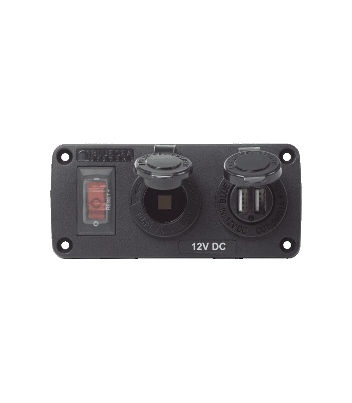Kompaktes, leicht zu installierendes DC – Ladepanel.Der integrierte Sicherungsautomat mit Schaltfunktion sichert den Stromkreis ab und ermöglicht die komplette Abschaltung des Panels, zum Schutz vor unnötigem Stromverbrauch.Die Silikonschutzkappe des Schutzschalters und die beiliegende Moosgummidichtung ermöglichen eine Aussenmontage in geschützten Bereichen.Panel bestückt mit: