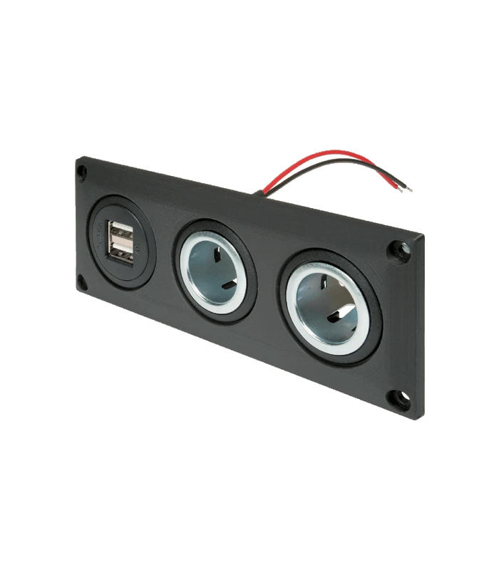 1 USB-A Doppelsteckdose, 12-24 V DC, Ausgang 5 V DC mit integriertem Spannungswandler, max. 5 A.