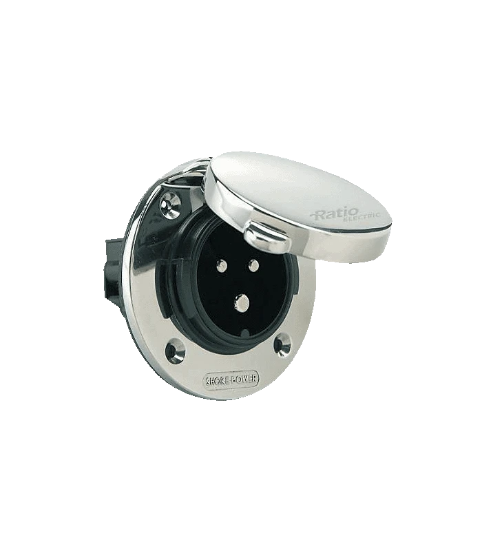 Einbaugerätestecker 230 V / 32 A mit Edelstahlgehäuse.