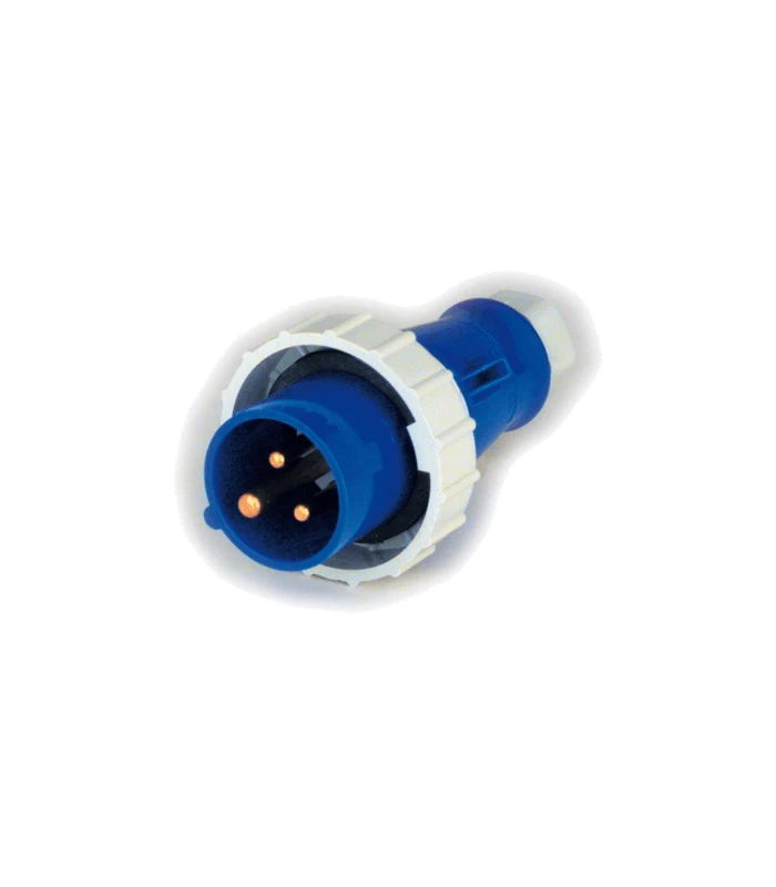 Wasserdichter CEE-Kupplungsstecker 2+PE, 230V/50Hz – 16A mit Schraubverschluss, Schutzart IP X7.