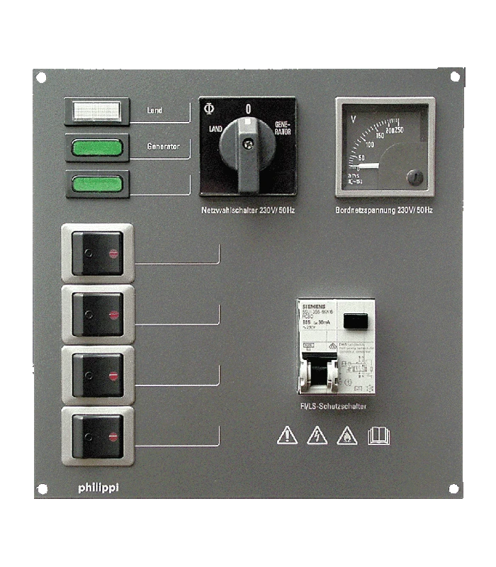 Landanschlusseinheit für Kombi-Wechselrichter mit Land-Generator-Umschalter.
