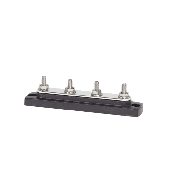 Hochwertige Sammelschiene aus verzinntem Kupfer, mit 4 Gewindebolzen Ø ¼“ (6,3 mm).