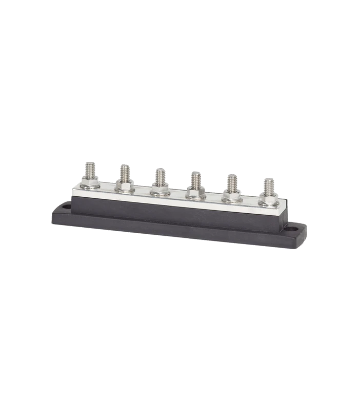 Hochbelastbare Sammelschiene aus verzinntem Kupfer, mit 6 Gewindebolzen 5/16″-18 (8mm).