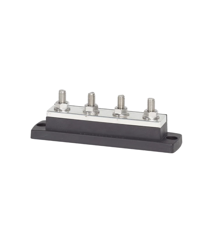 Hochbelastbare Sammelschiene aus verzinntem Kupfer, mit 4 Gewindebolzen Ø 5/16“ (5,9 mm).