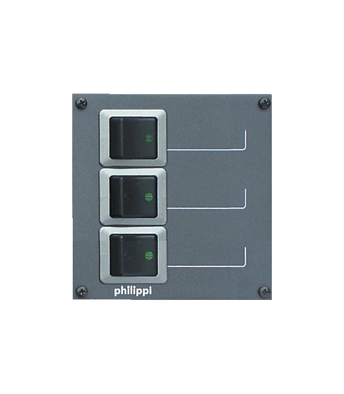 Stromkreisverteiler mit 3 Stromkreisen mit thermischen Wipp-Schutzschaltern, Nennstromstärke 30 A.