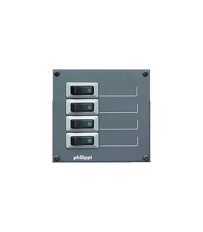 Stromkreisverteiler mit 4 Stromkreisen mit thermischen Wipp-Schutzschaltern, Nennstromstärke 10 A.