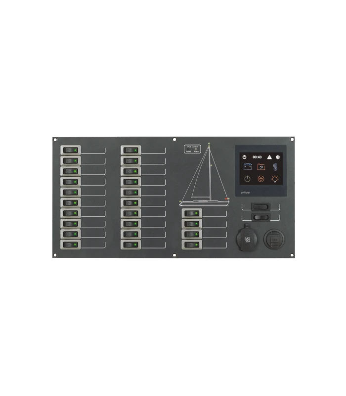 Stromkreisverteiler mit 24 Stromkreisen mit thermischen Wipp-Schutzschaltern, Nennstromstärke 10 A.