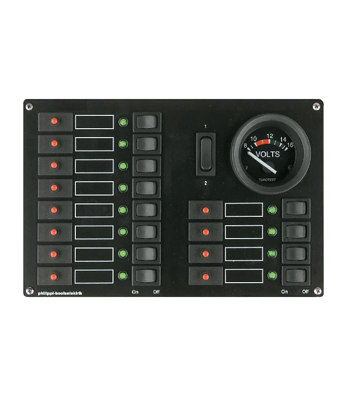 Mit Voltmeter mit LED-Beleuchtung und Umschalter (1-0-2).