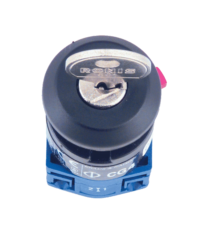 Schlüsselschalter (0-1) für den fernsteuerbaren Hauptschalter FBR 265 und TSA 265. Der Schlüssel ist in der Aus-Stellung abziehbar.