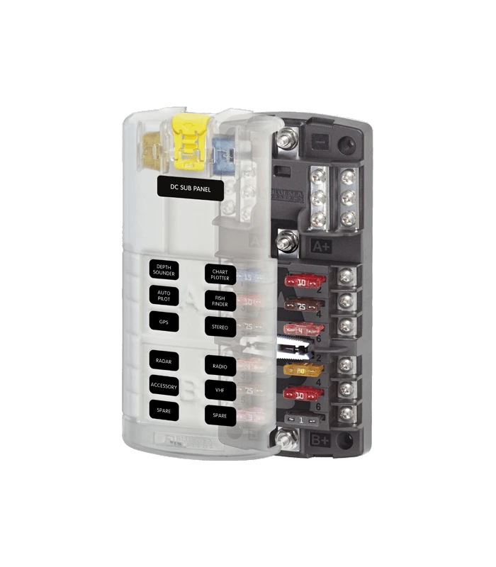 – Transparente Abdeckung mit Halter für 2 Ersatzsicherungen