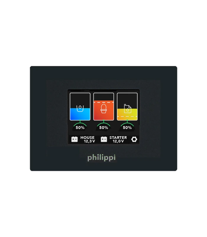 Tank-Monitor NTS mit NMEA2000 Schnittstelle. 2,4″ Farb-TFT-Touchscreen-Grafikdisplay mit Helligkeitssensor zur automatischen Anpassung der Displayhelligkeit.