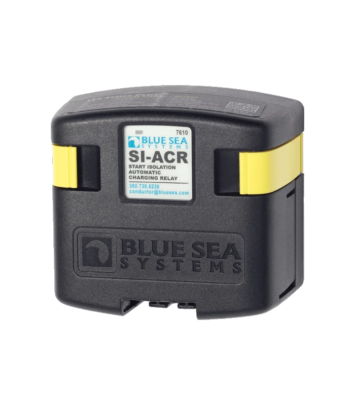 Automatisch spannungsabhängig und zeitverzögert schaltendes Trennrelais zum Zusammenschalten der beiden angeschlossenen Batterien. Die Batterien werden zusammengeschaltet, sobald eine der beiden Batterien 30 s über der Einschaltspannung von 13,6 V liegt. Die Batterien werden wieder getrennt, sobald die Ausschaltschwelle von 12,4 V für 10s unterschritten wird.