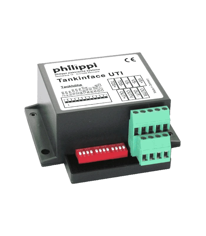 Zum Anschluss der Tanksonden TDS, TDN, TDT an analoge Rundinstrumente mit Spannungs- bzw. Widerstandseingang wird das Interface UTI benötigt. Es wandelt das 4 – 20 mA Signal der Tanksonde in ein Spannungs- (0,5 –2,5 V) bzw. Widerstandssignal (10 – 180 ?) um. Zusätzlich lässt sich die Tankhöhe am Interface einstellen, damit das Vollsignal der Tanksonde TDS, TDN, TDT zur Anzeige passt.