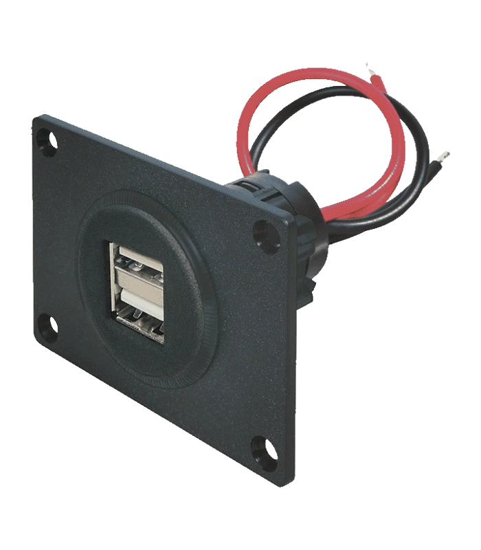 USB Einbau-Doppel-Ladesteckdose mit Montageplatte 60 x 40 mm.